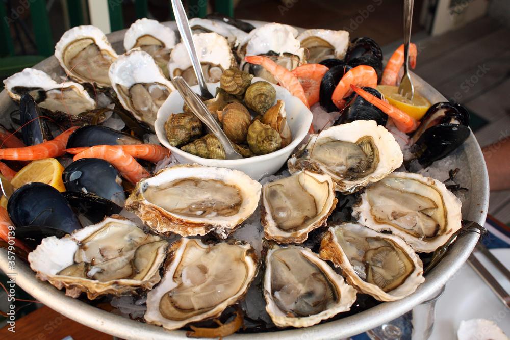(huîtres, langoustines et crevettes)